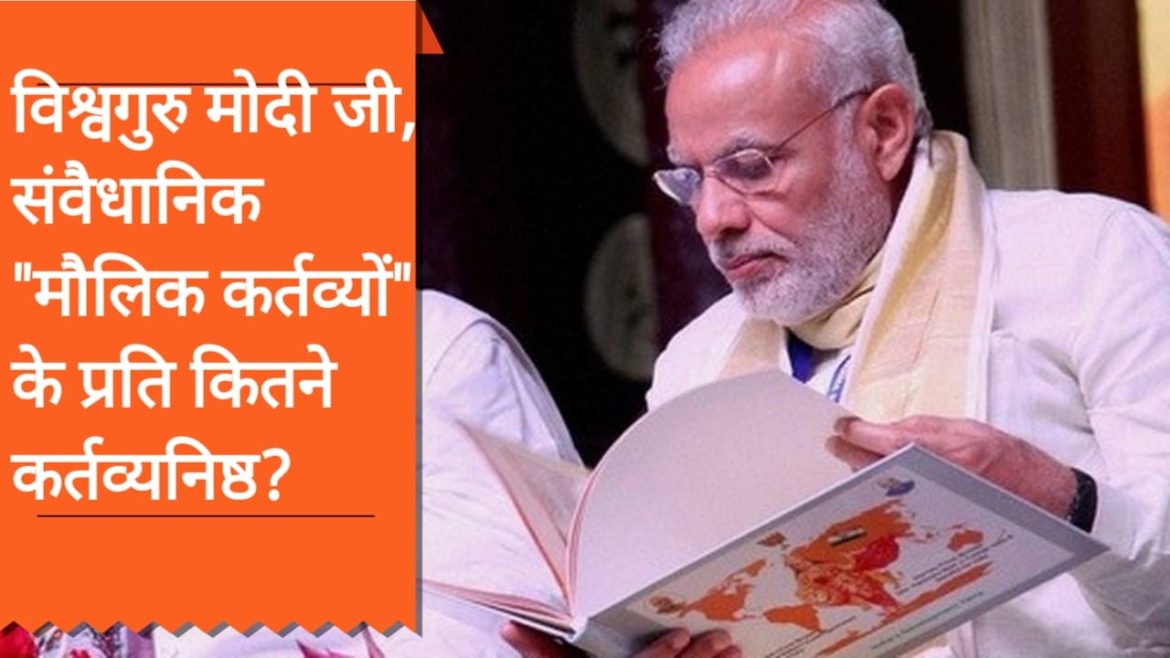 देश के प्रधानमंत्री से पहले सर्वप्रथम भारत देश के आम नागरिक है। श्री नरेंद्र दामोदर दास मोदी। अतः देश के आम नागरिकों की तरह “मौलिक कर्तव्य” का निर्वहन करना उनका पहला संवैधानिक मौलिक कर्तव्य है। वर्ष 1976 में भारतीय संविधान के 42वे संशोधन अधिनियम द्वारा भाग 04 अनुच्छेद 51(A) नागरिकों के मौलिक कर्तव्यों को सरदार स्वर्ण सिंह समिति के सिफारिश पर जोड़े गए थे। ताकि देश के प्रति नागरिकों की जिम्मेवारी तय की जा सके। “मौलिक कर्तव्य’ का देश के नागरिक होने के नाते कितनी कर्तव्य निष्ठा व ईमानदारी से देश के प्रधानमंत्री मोदी जी,उनके दल के राजनेता व संघ के पदाधिकारी करते हैं, निर्वहन…. तथ्यों पर आधारित हम करते हैं… मूल्यांकन और जानते हैं जमीनी सच्चाई।